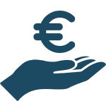 Silhouette of a hand holding a Euro currency symbol.